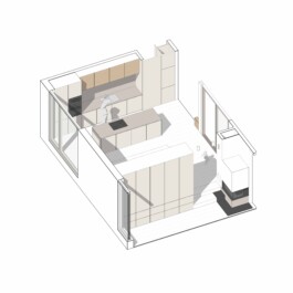 Neben der architektonischen Planung lag ein besonderer Fokus auf der individuellen Ausgestaltung der Innenräume. Bereits in der Entwurfsphase wurden der Bauherrschaft mithilfe von 3D-Axonometrien Raumkonzepte vermittelt. Eine Bildstrecke zeigt den Vergleich zwischen der Planung und dem schließlich realisierten Ergebnis.